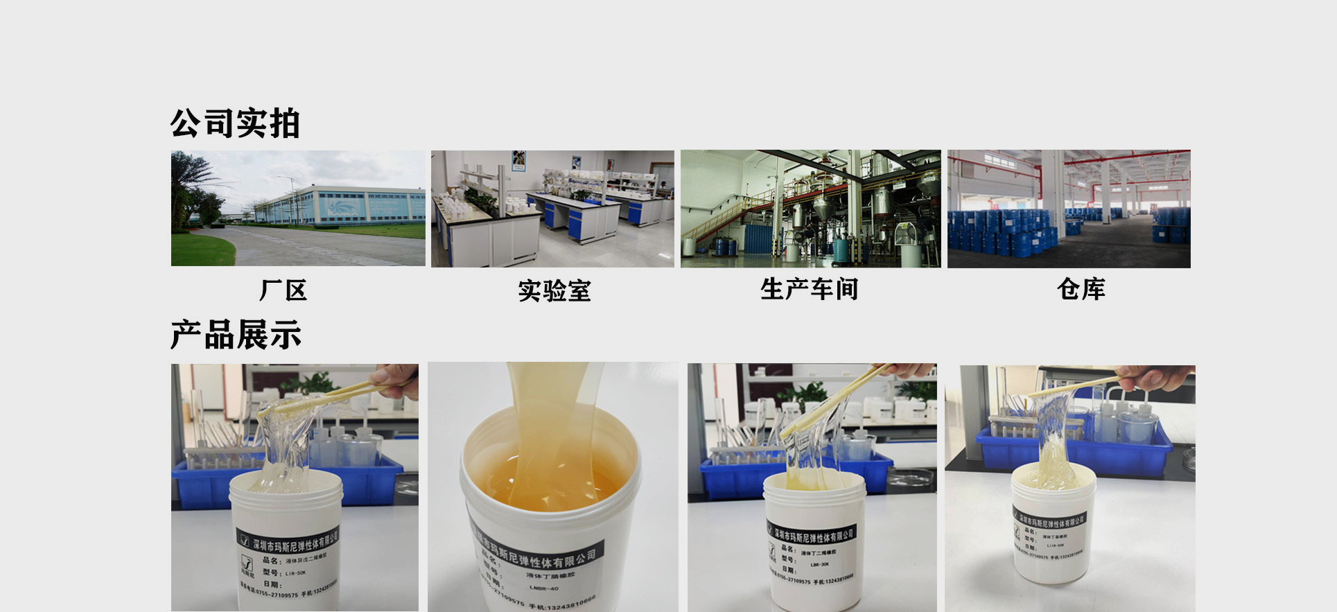 公司主要生產銷售液體聚丁二烯橡膠、液體丁二烯橡膠、液體丁基橡膠、液體氯丁橡膠、丁腈橡膠、水性液體丁基橡膠、潤滑脂拉絲劑、潤滑增黏劑、潤滑增粘劑、中性筆隨動密封劑、中性筆液體活塞、中性筆尾油等。已通過歐盟CE、ISO9001、ISO13485及美國FDA認證,產品暢銷深圳、東莞、廣州、惠州、佛山等地,并遠銷亞洲、歐美等國家和地區。